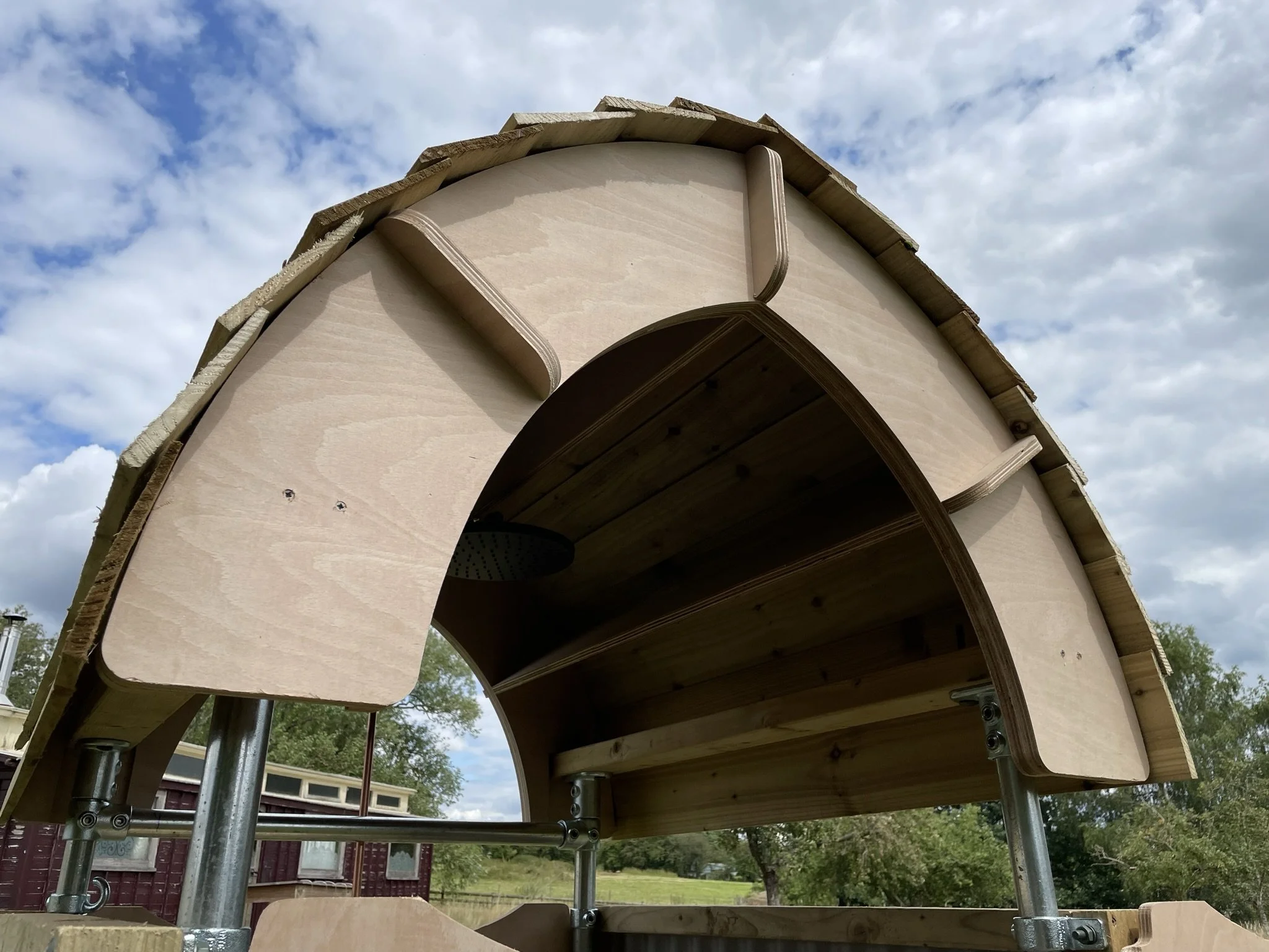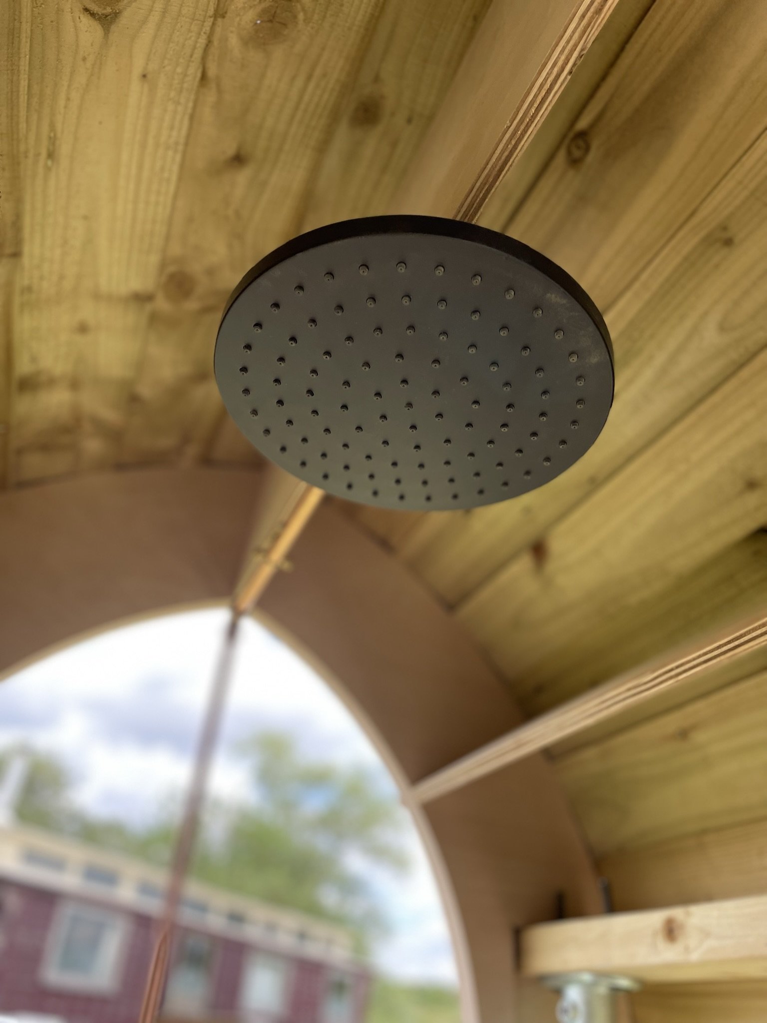 Our naked shower arrives in pieces on a pallet. Follow our easy to follow instructions and self-assemble the shower on the pallet it arrives on. The kit includes almost everything you need apart from sandpaper, paint, some basic tools and a hot water source. Although through recommendations, we can help you source these too so you have a self-built shower in no time.